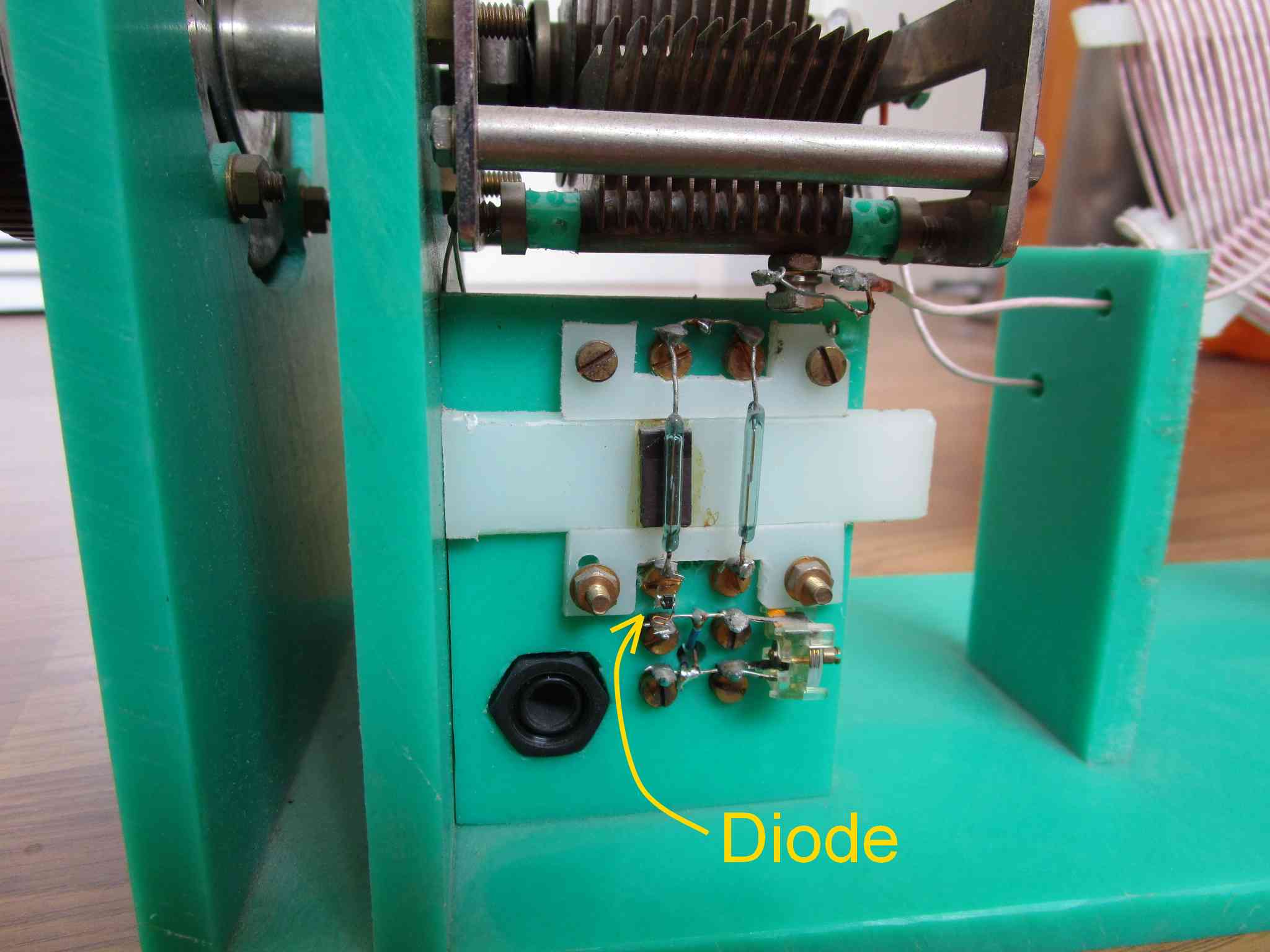 | Detector unit 1 | Onder de afstemcondensator bevinden zich de twee trimmer condensators. |