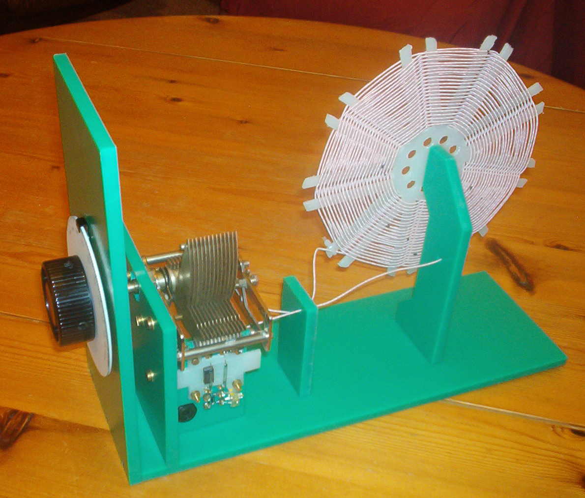 De afstemcondensator heeft verzilverde platen en isolators van polyetheen, en is hier omschreven onder de naam C2b.