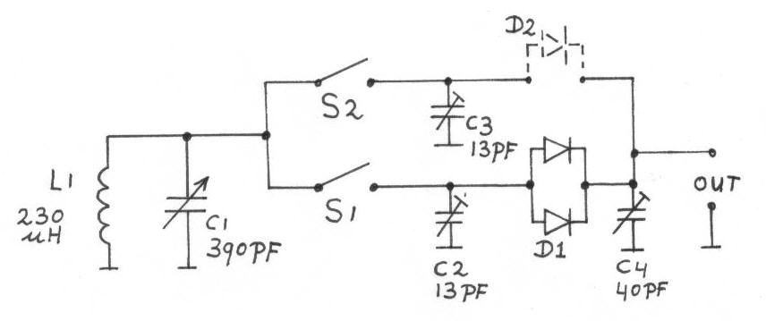 Met trimmer condensators C2 en C3 is het frequentie bereik van de detector unit in te stellen.
