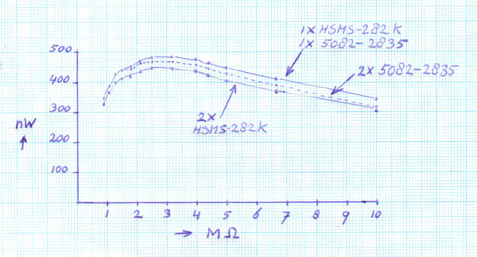 Als diode geven een enkele HSMS-282K en een enkele 5082-2835 de beste
