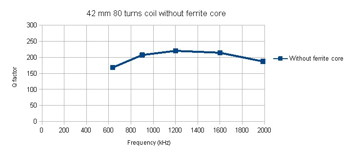 Without ferrite in the coil.