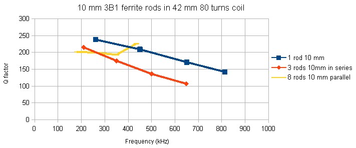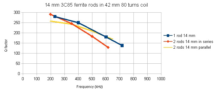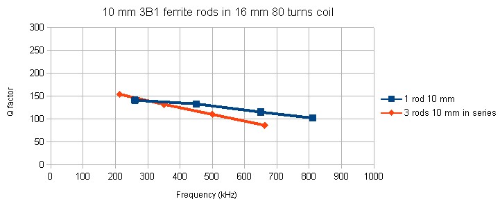 In this measurement three 10 x 200 mm ferrite rods are placed in series.