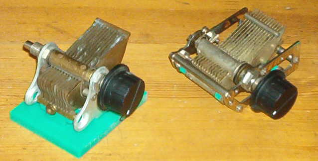 Van afstemcondensator C2 heb ik de plastic isolatieblokjes vervangen door blokjes van polyetheen (dat zijn de groene blokjes op de volgende foto).