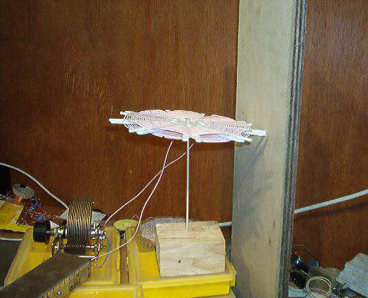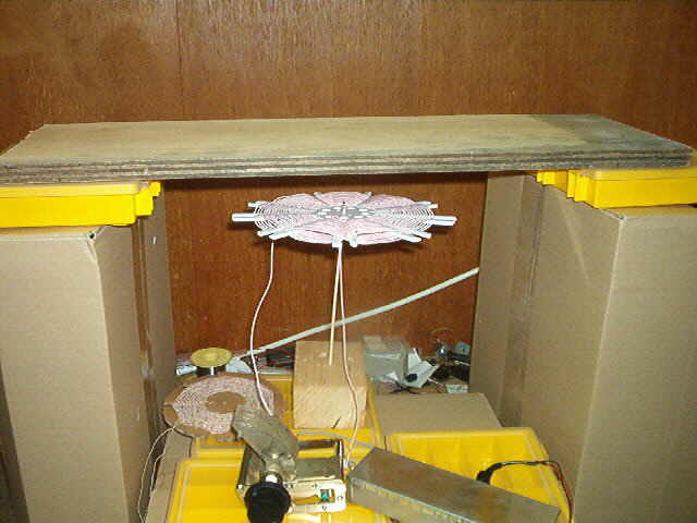 Vervolgens legde ik diverse materialen bovenop de spoel windingen, zonder aan de
