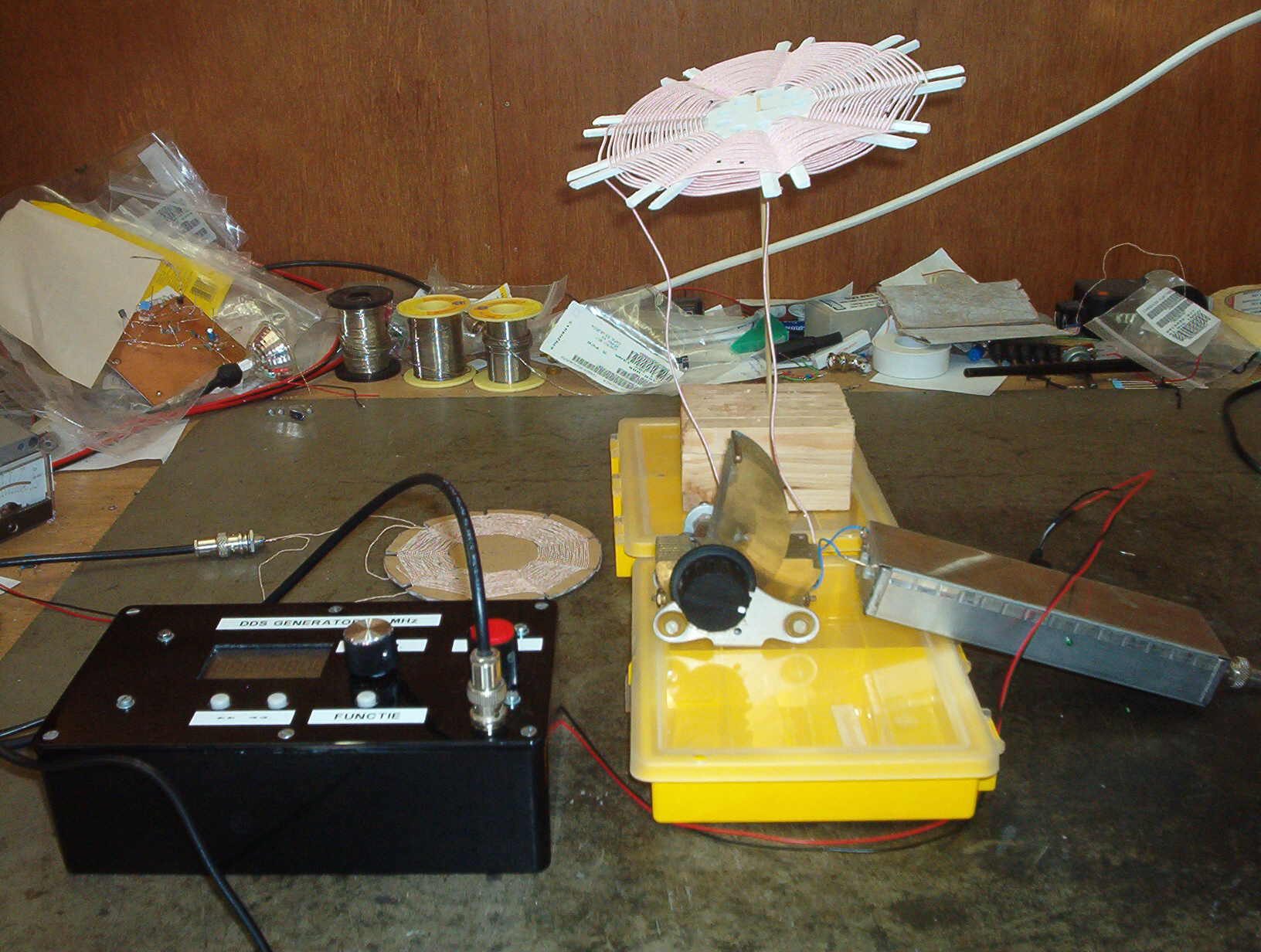 De spoel welke op de tafel ligt is de koppelspoel welke met de DDS generator is