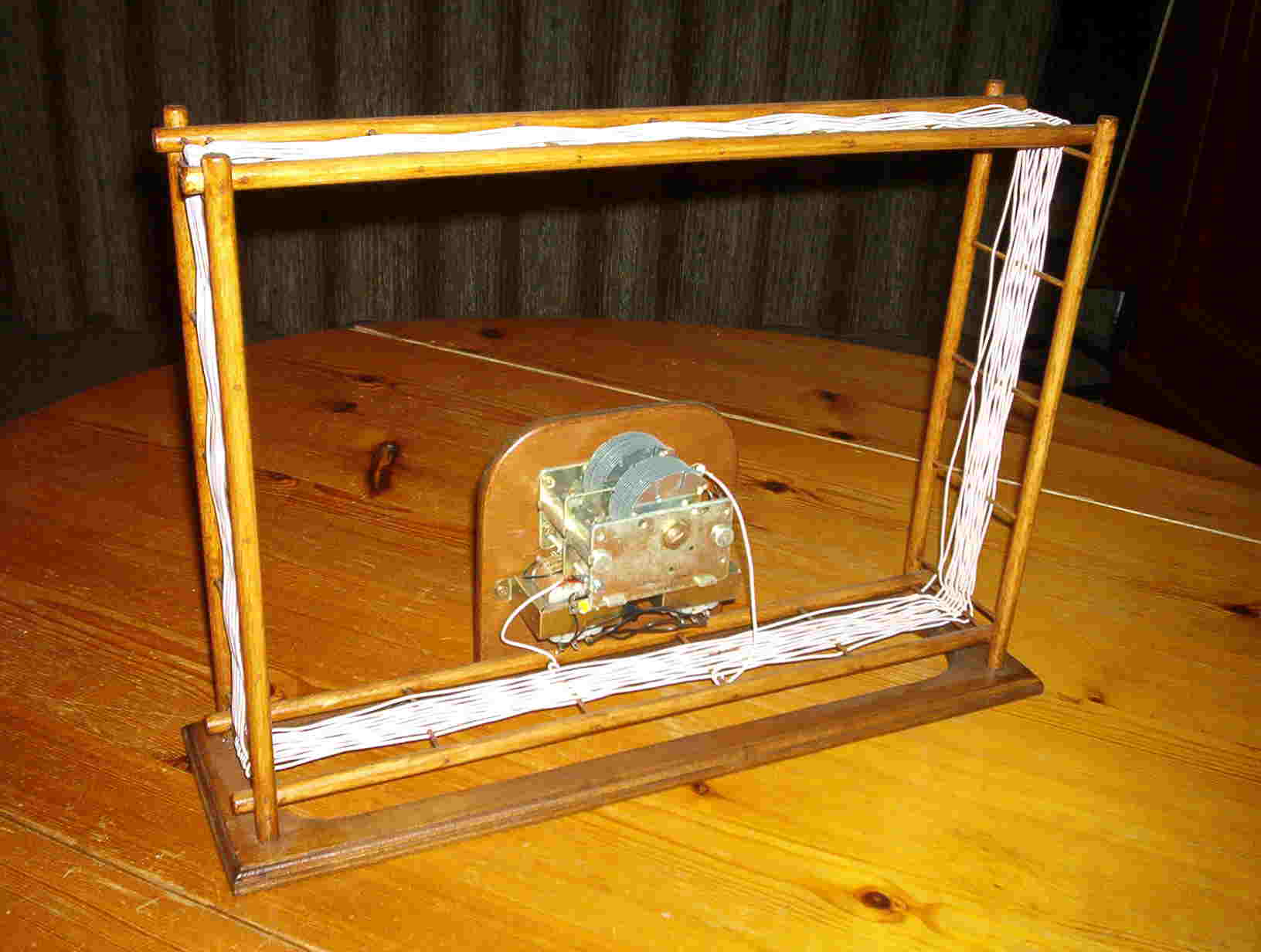 The loop antenna has 16 windings, and is wound around a frame made of wooden