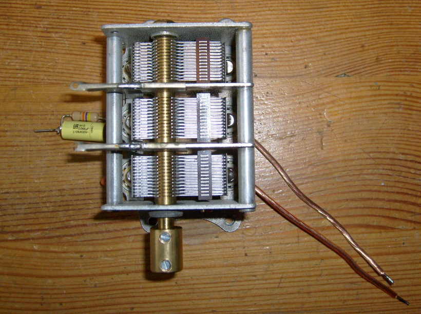 Leg de afstemcondensator op zijn kop (de as zit op deze foto aan de bovenkant).