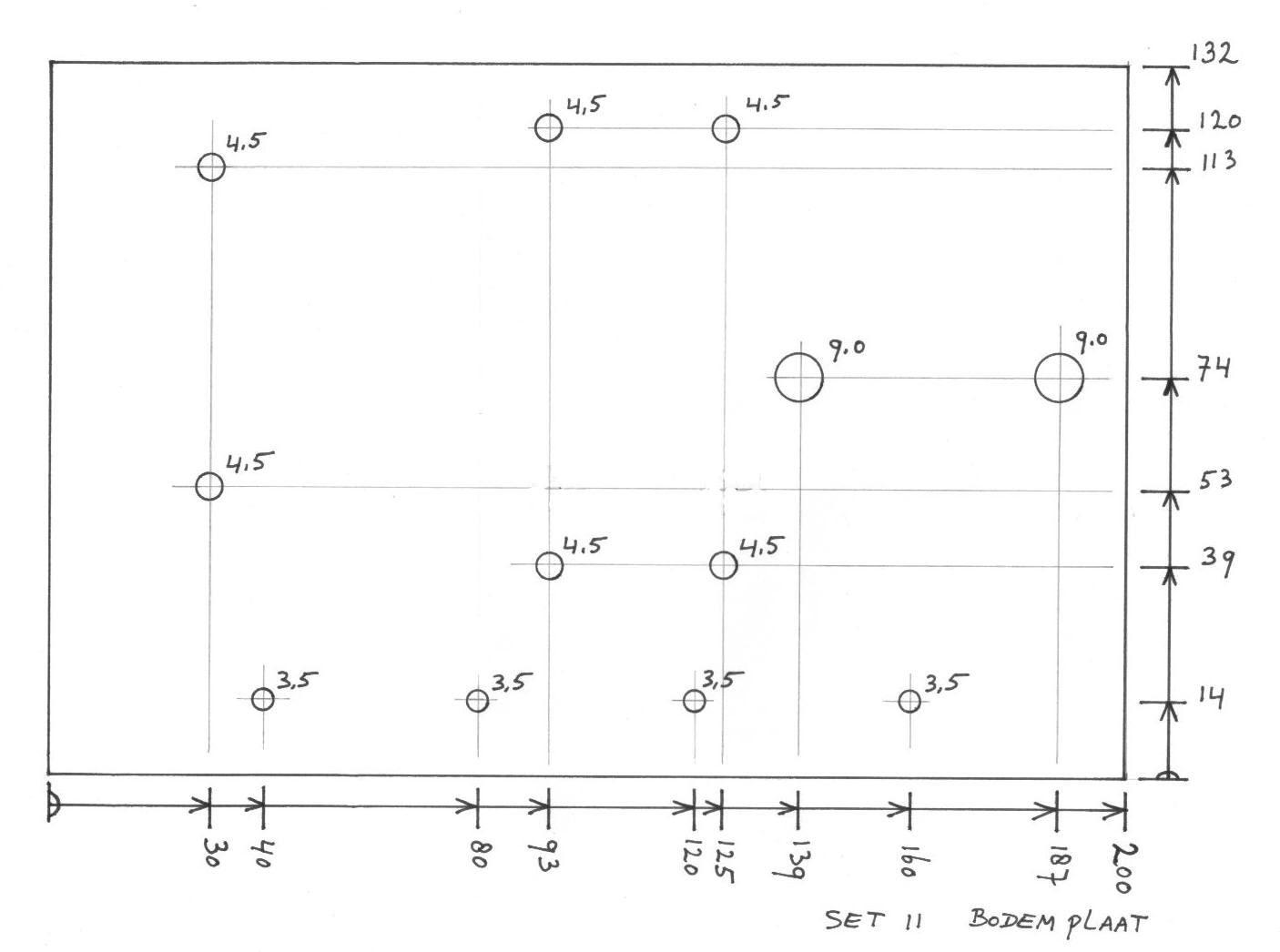 Zaag en boor de bodemplaat en frontplaat overeenkomstig onderstaande tekeningen.