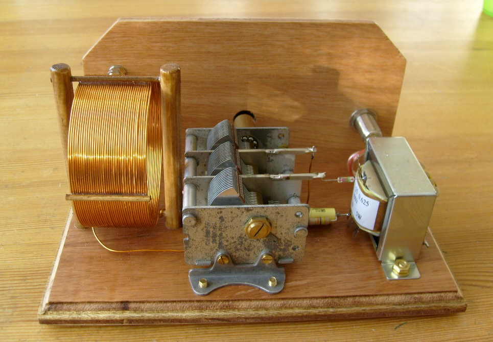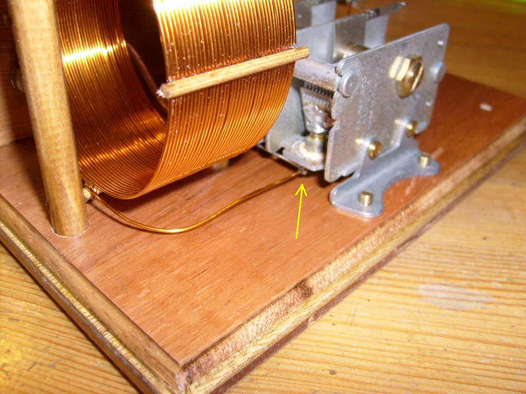 Één van de spoeldraden loopt onder de afstemcondensator door, wordt dan omhoog gebogen